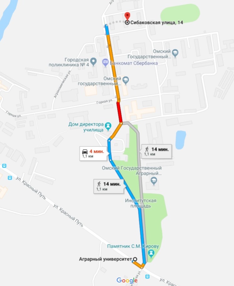 Проезд от Ж/Д вокзала любым видом транспорта до остановки «Аграрный университет».