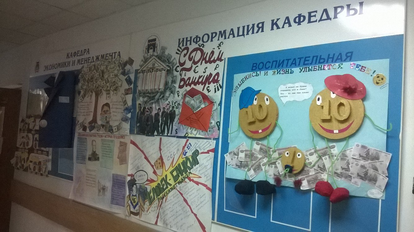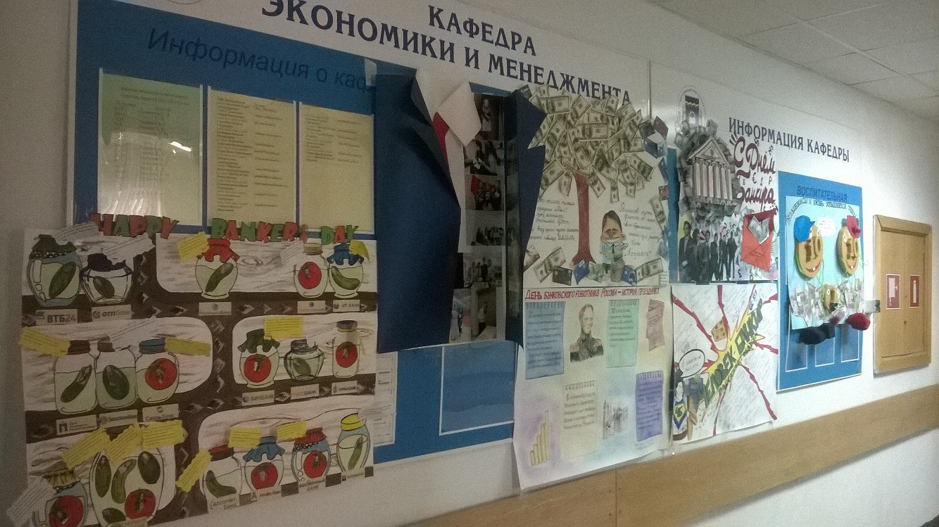 11 декабря 2017 завершился V ежегодный студенческий конкурс стенгазет, посвящённый Дню банковского работника России. Конкурс традиционно проводится кафедрой Экономики и менеджмента среди студентов профиля Банковский сервис.