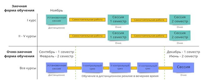 Классическая заочная форма обучения предполагает большую самостоятельность при обучении. На первом курсе пройдет установочная сессия, на ней вы получите задания по дисциплинам первого семестра. Задания выполняете самостоятельно. Сдавать задания нужно будет на сессии, приезжая в институт. Длительность сессии три недели. Взаимодействия с преподавателем в межсессионый период у студентов нет. Установочных сессий больше не будет, на текущей сессии вы будете получать задания на следующую сессию. Хорошо это или плохо - каждый решает сам. Кому-то нравится, что его никто не отвлекает в процессе учебы, а кому-то сложно самоорганизоваться без внешнего стимула.