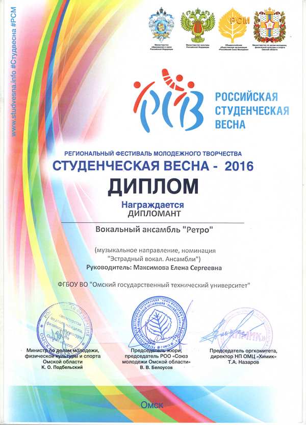 В апреле 2016 в Омском молодежном центре «Химик» завершился региональный фестиваль молодежного творчества «Студенческая весна 2016»,