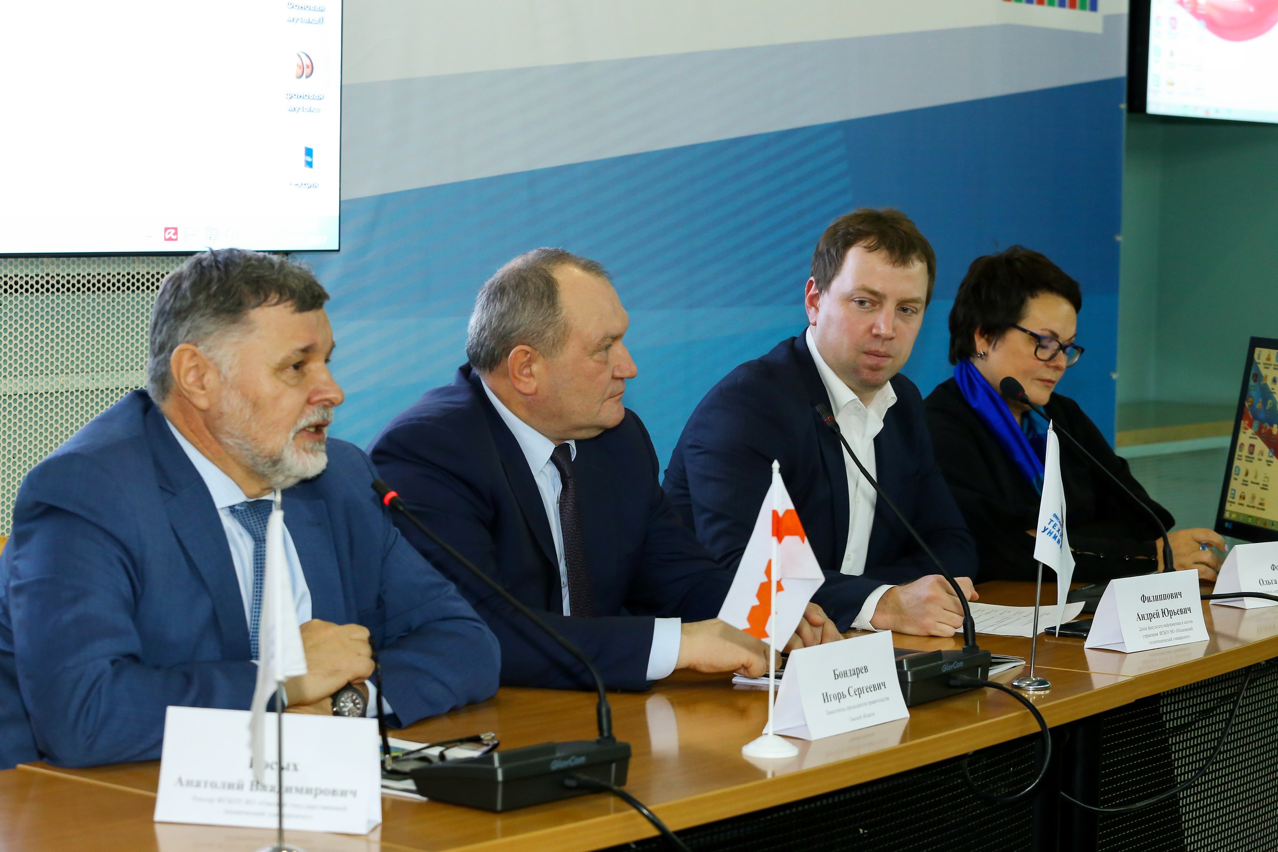 Накануне конференции, 15 ноября, в Доме журналистов прошла пресс-конференция ««Роль опорных университетов в развитии региона», в которой приняли участие Ирина Аржанова, исполнительный директор НФПК, Анатолий Косых, ректор ОмГТУ, Елена Гебель, заведующий кафедрой “Автоматизации и робототехники”, руководитель СКБ (ОмГТУ) и Владислав Рябчевский, студент ОмГТУ, сотрудник СКБ. Пресс-конференция была посвящена изменению роли опорных университетов.
