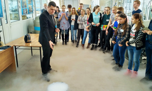 Учащиеся 7-8 классов побывали в лаборатории кафедры химии и ресурсном центре Нефтехимического института ОмГТУ, где они увидели, как выглядит действующее оборудование для переработки нефтепродуктов, а также поучаствовали в экспериментах с жидким азотом.