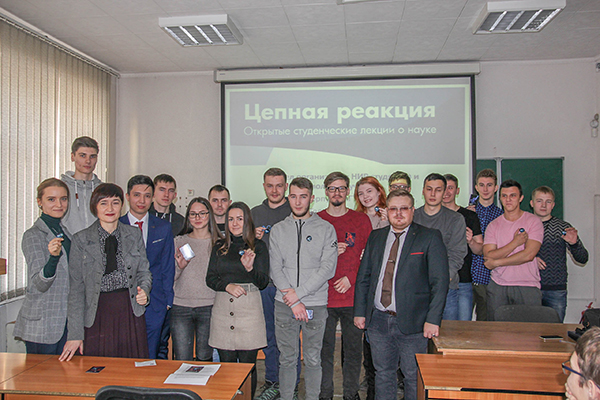 Ангелина Никифорова, начальник отдела организации научно-исследовательской работы студентов и молодых ученых: «Мы немного волновались, организуя мероприятие нового формата. Но опасения оказались напрасны: на лекциях побывало более 300 участников, среди которых были студенты, молодые ученые и даже школьники. После проведенных слушаний ряды студенческих конструкторских бюро и научно-исследовательских лабораторий пополнились новыми участниками, и это не может не радовать. Учитывая проявленный интерес, мы решили организовать следующий этап «Цепной реакции» в 2020 году. Думаем, что нам удастся удивить аудиторию еще более интересными лекциями» |