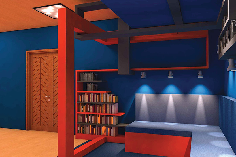 «Основополагающий принцип реконструкции – всесторонний анализ общественного пространства. В читальном зале библиотеки ИДЭиС формообразующим элементом являлась крупногабаритная вентиляционная система. Поддержание геометризма, функциональность объектов, а также учет цветового восприятия для чтения – залог комфортной и выгодной организации пространства».