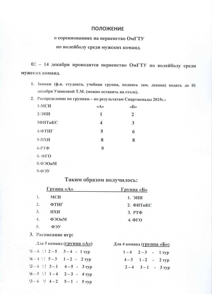 Стартует первенство факультетов (институтов) ОмГТУ по волейболу среди мужских команд в зачет спартакиады "Студенческая весна".