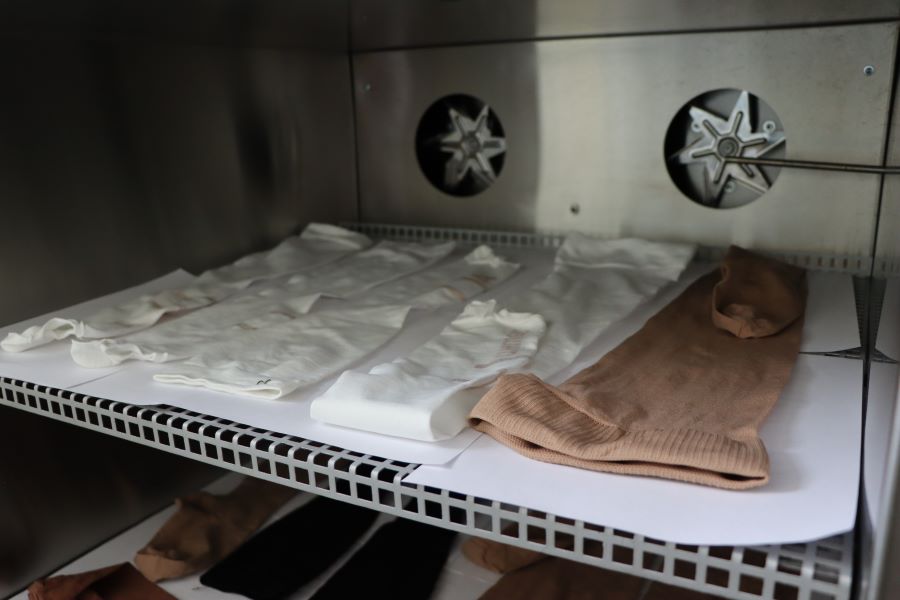 У обычного компрессионного трикотажа есть существенный недостаток: плотная ткань нарушает естественный теплообмен, и это приводит к перегреву, зуду и раздражению, из-за чего пациенты преждевременно отказываются от ношения изделий, нарушая курс лечения. Молодой исследователь разработал медицинское изделие, которое не только оказывает лечебное давление, но и автоматически регулирует температуру кожи ног. Даниил внедрил в структуру ткани «умные» микрокапсулы. Материал пропитывается специальной эмульсией, содержащей вещества с фазовым переходом (PCM).