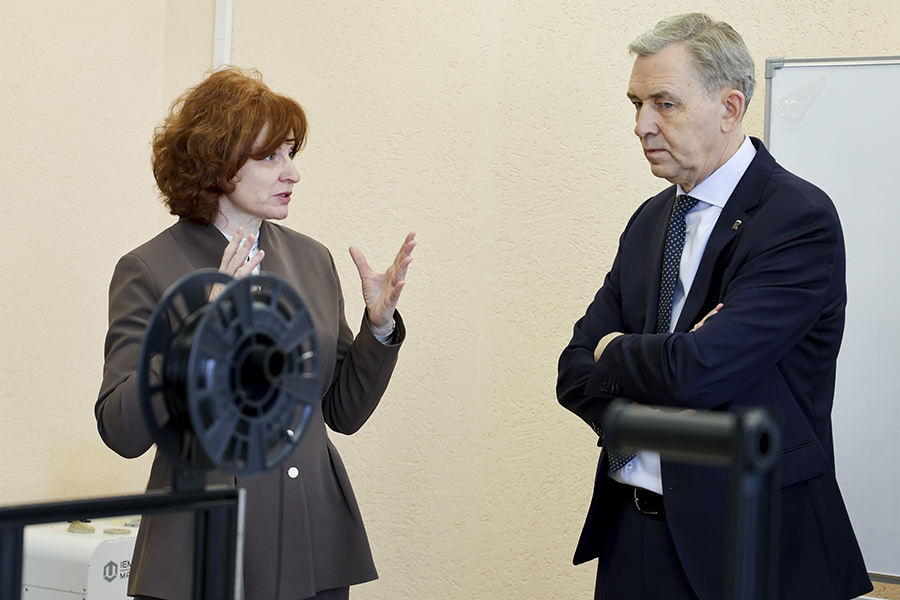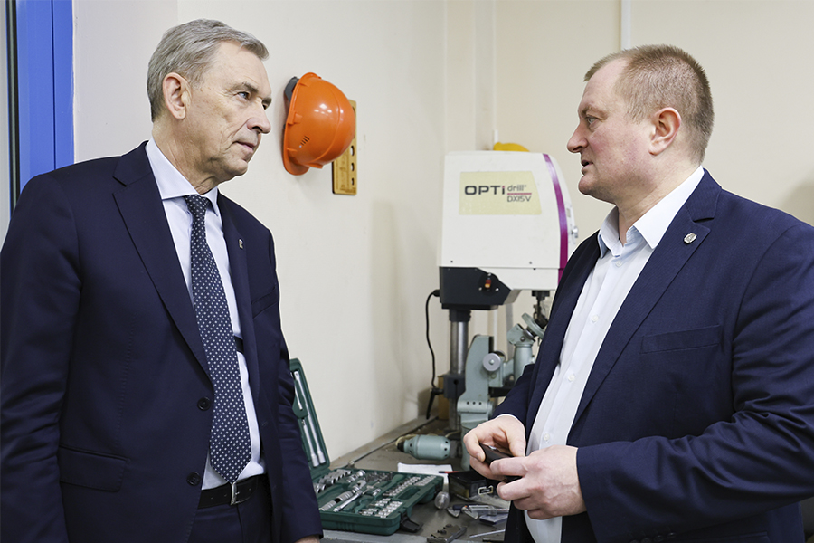 Для гостей провели экскурсию по ресурсным центрам, которые играют ключевую роль в подготовке специалистов для ракетно-космической отрасли. В Центре подготовки высококвалифицированных инженерных кадров для ПО «Полет» Александр Артемов и Павел Коренной осмотрели лаборатории, в которых ведутся научно-исследовательские работы, а также проходят практические занятия политехников. Здесь же они пообщались с обучающимися – обсудили целевое обучение, стажировки на предприятиях и планы по развитию ракетостроения в регионе.