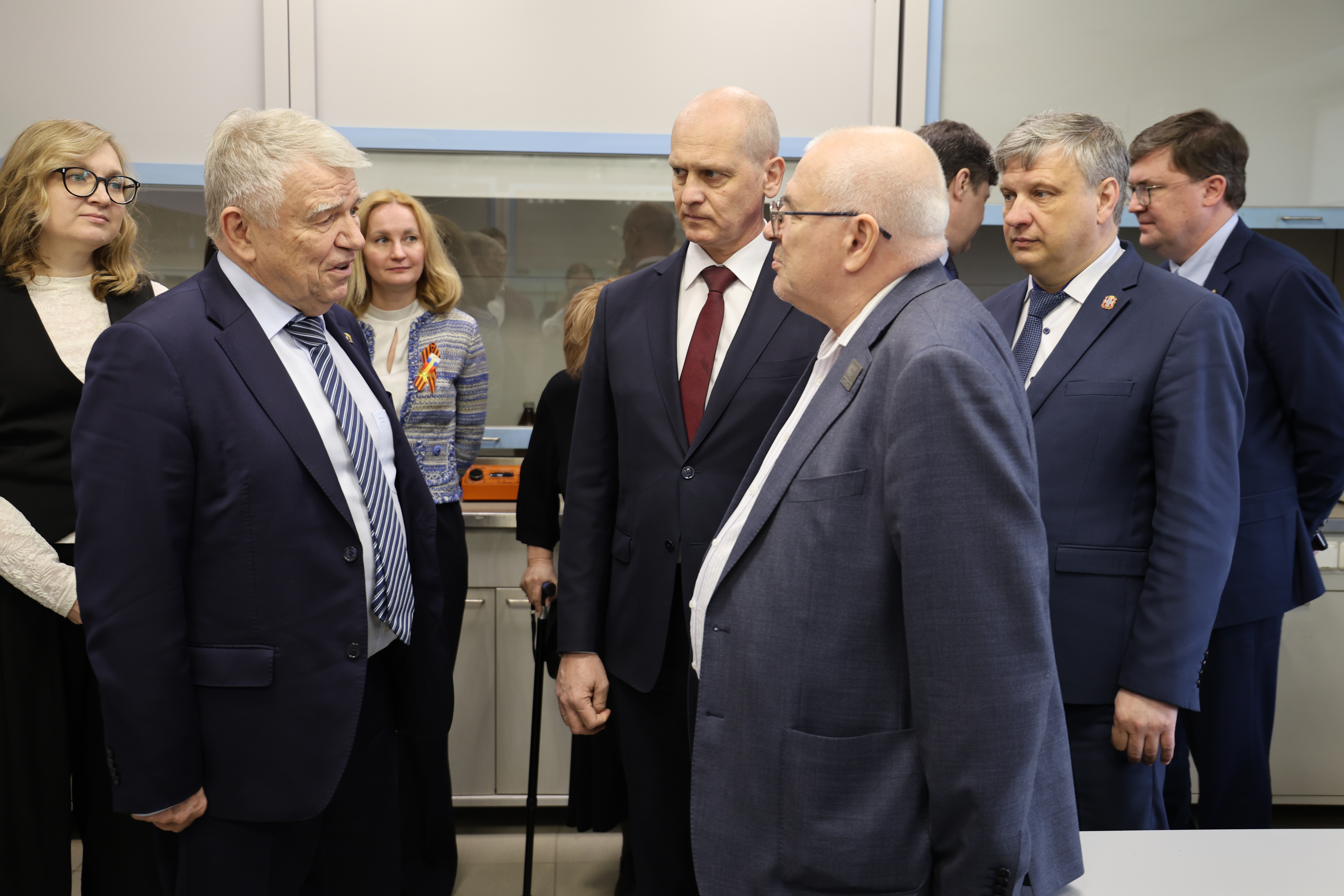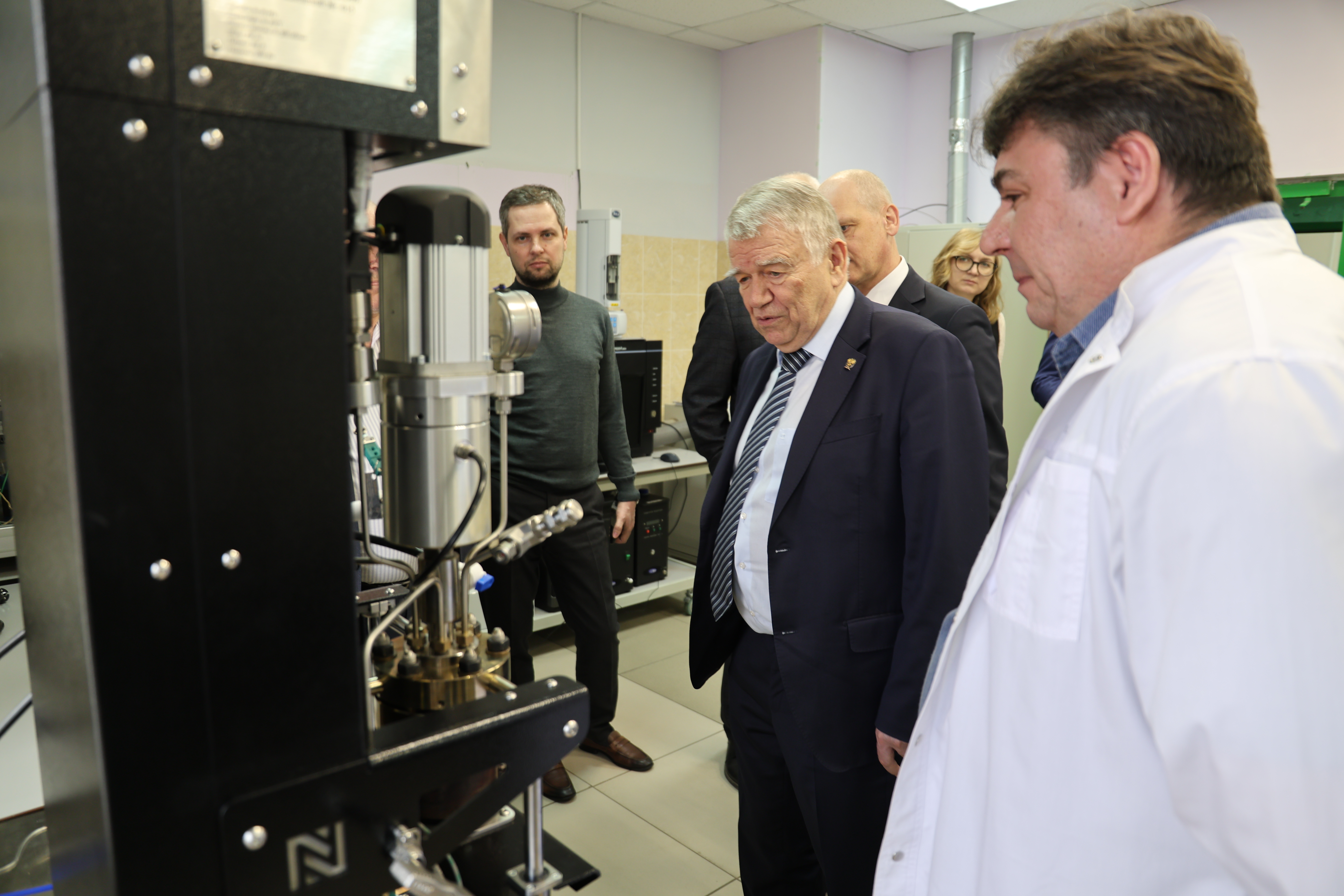 Экскурсионная программа стартовала в научно-образовательном ресурсном центре «Химическая технология и новые материалы». Гостей встретил его директор Александр Мышлявцев. Он представил лабораторную базу центра, рассказал о ведущихся исследованиях в области органического синтеза, создания новых функциональных материалов и других.