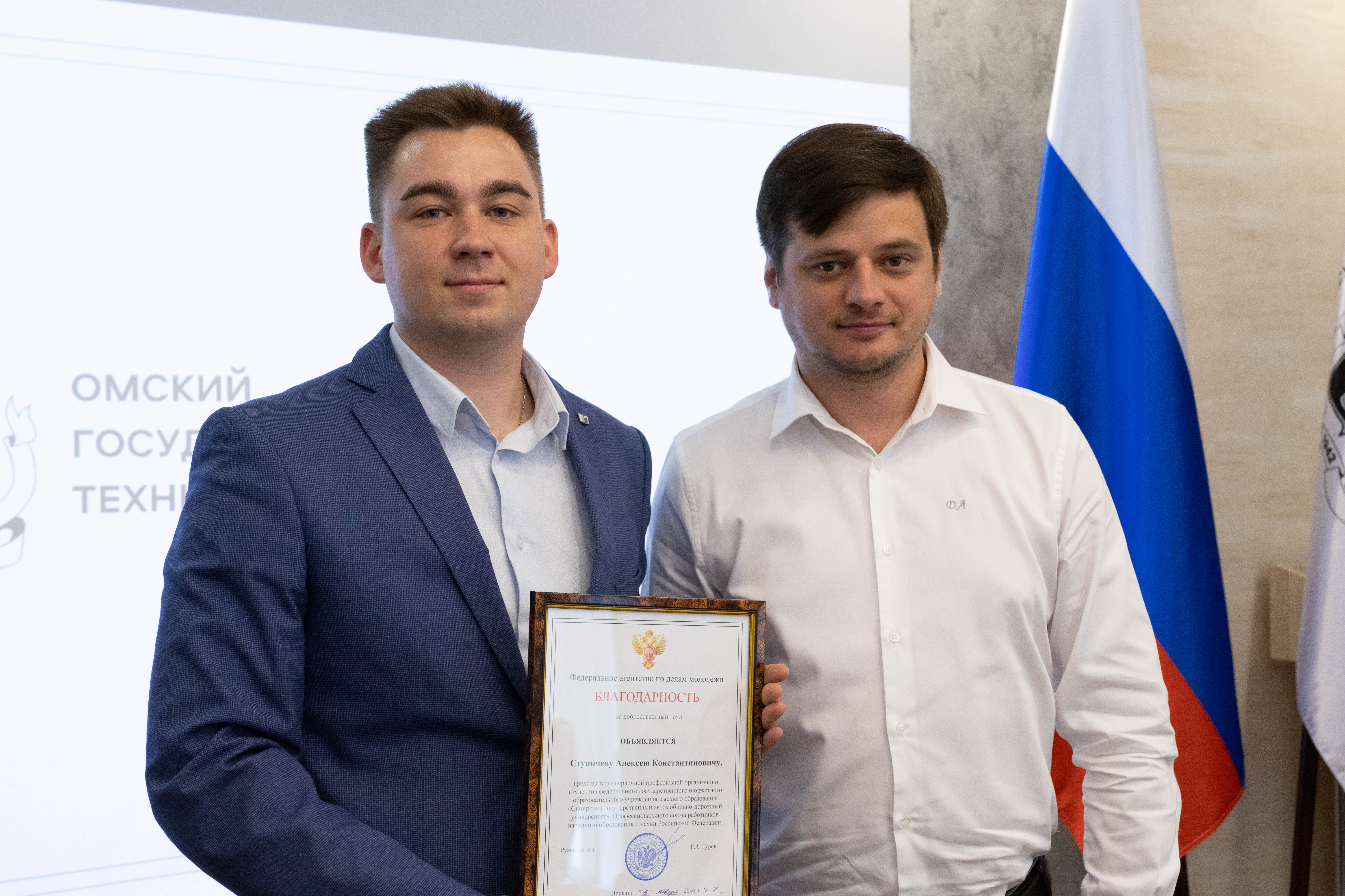 Кроме того, на встрече состоялось торжественное награждение. Павел Корчагин и Олег Перегудов были отмечены благодарственными письмами от губернатора Омской области за участие в подготовке и проведении проекта «Голос поколения. Преподаватели». Артем Арчибасов и Алексей Ступичев были отмечены благодарностью от Федерального агентства по делам молодежи за добросовестный труд.