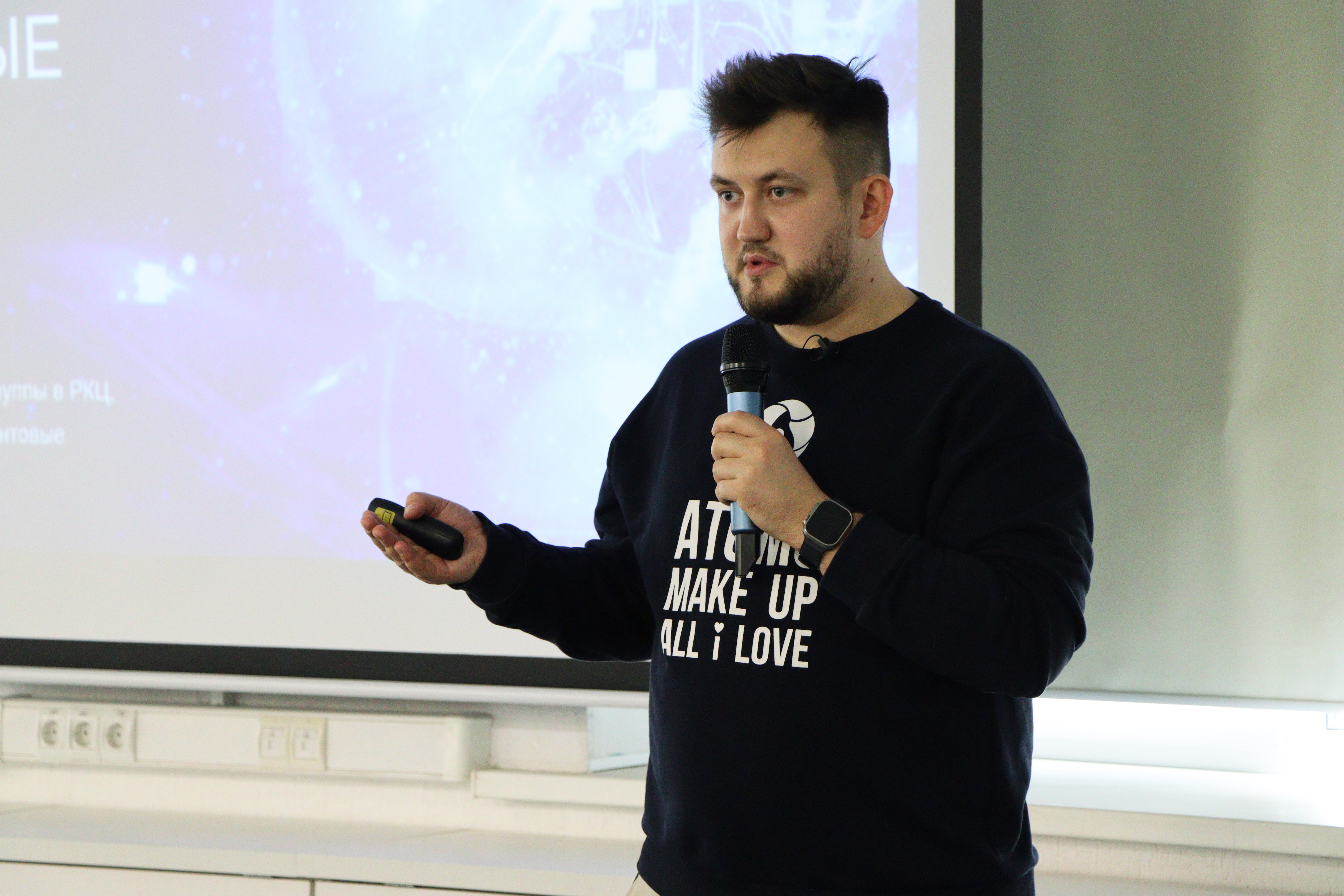 Перед обучающимися выступил руководитель научной группы «Росатом – Квантовые технологии» Дмитрий Чермошенцев. Он поделился передовыми знаниями о том, как квантовая физика становится основой технологий будущего – от сверхточной навигации до защищенной связи и квантовых компьютеров. Спикер рассказал, как именно используются эти разработки в современном мире и как квантовые вычисления могут помочь сделать прорыв в разных отраслях. В формате живого диалога студенты могли задать все интересующие вопросы.