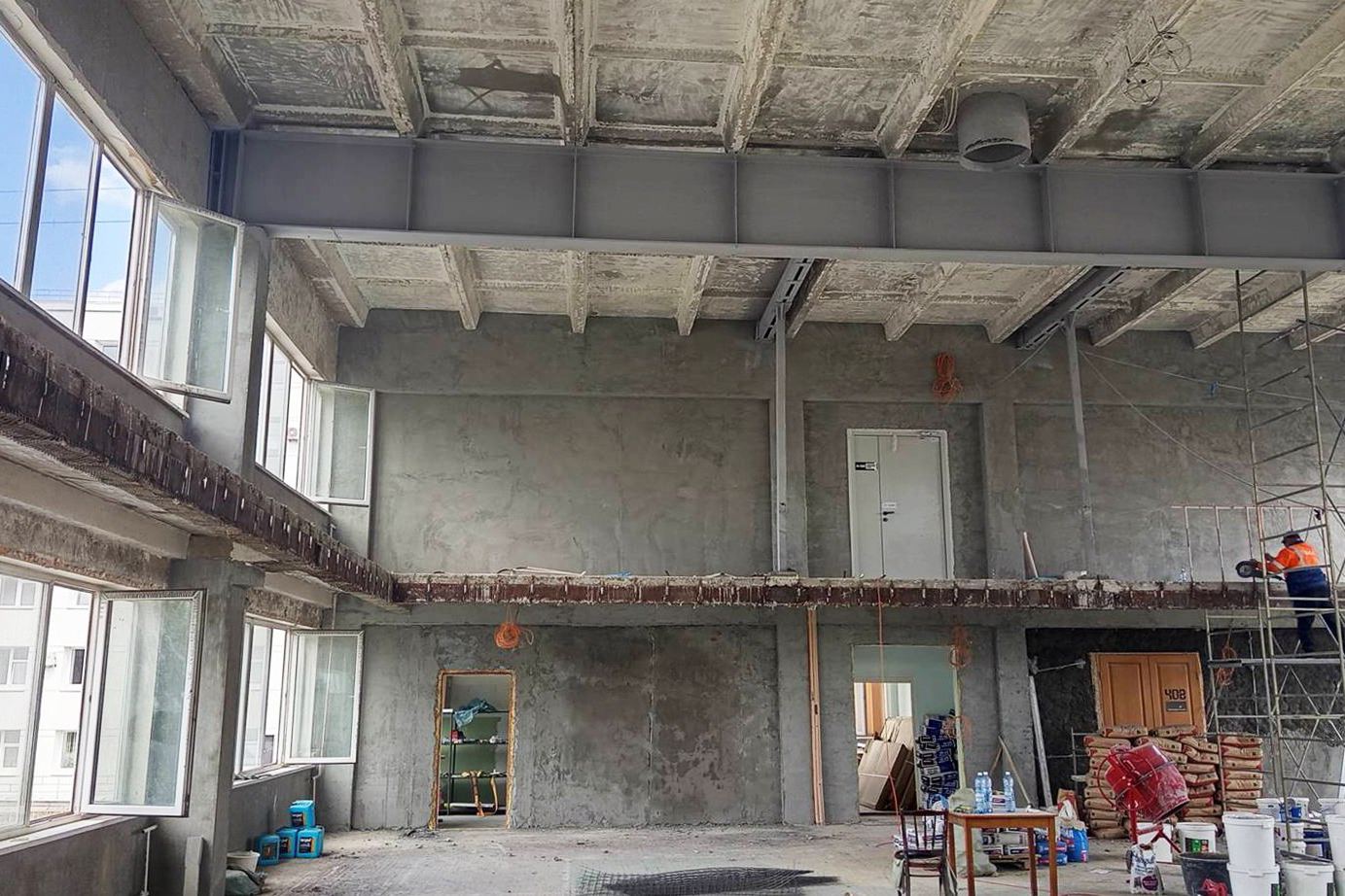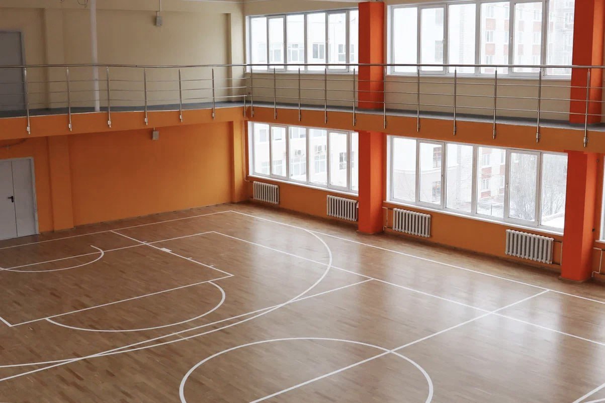 Спортивный зал в 14-м корпусе пережил настоящую трансформацию. Здесь были выполнены работы по ремонту стен, потолков, заменен паркет, нанесена разметка, восстановлено отопление, проведена противопожарная обработка несущих металлических балок, настелено напольное покрытие на балконе, установлены новые двери. В новом современном спортивном пространстве можно тренироваться в одиночку или в команде, проводить соревнования и внутривузовские турниры.