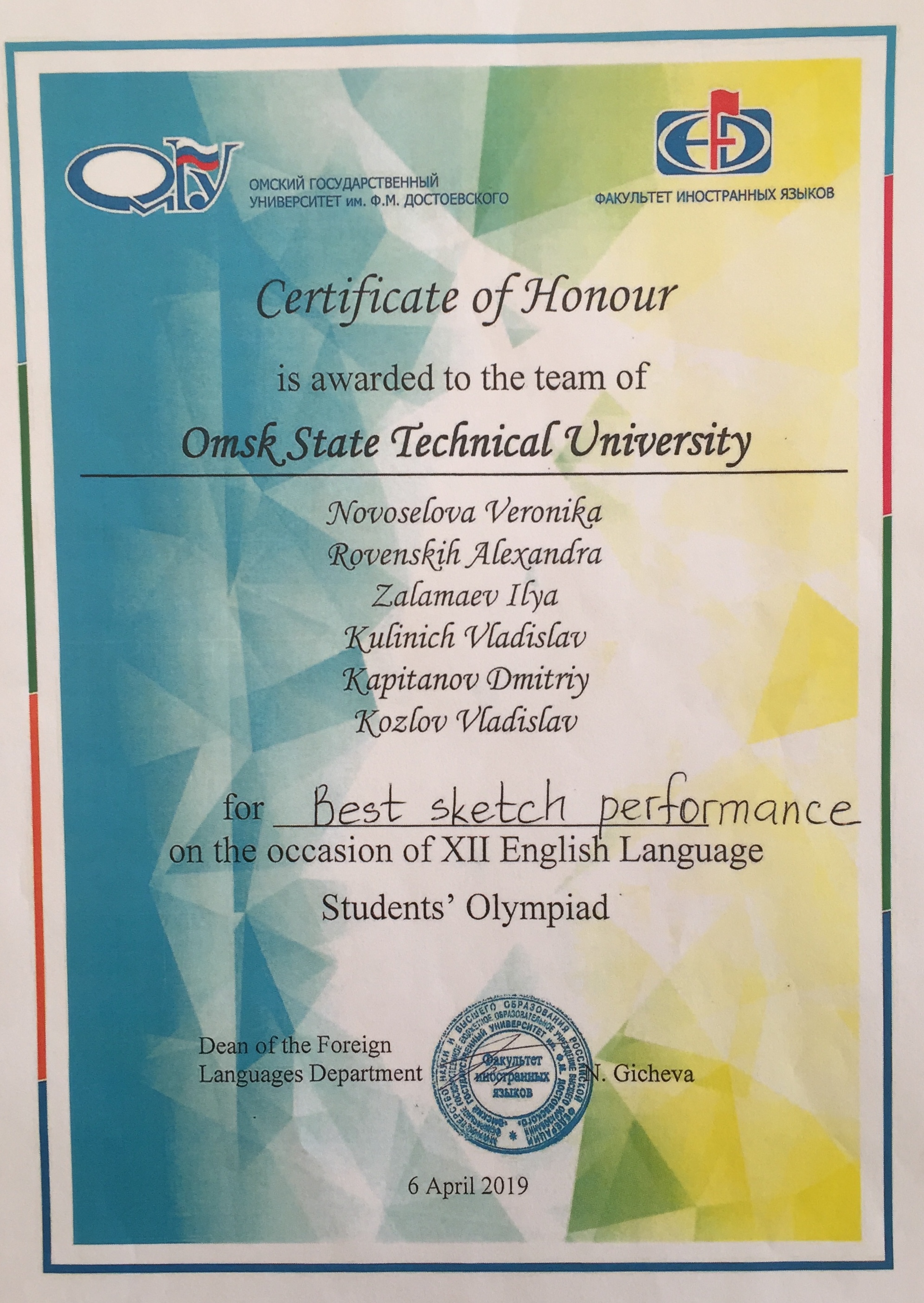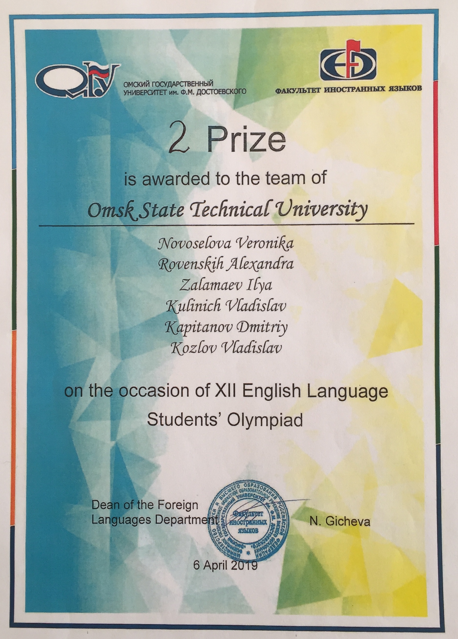 Студенты ОмГТУ - призеры Межвузовской олимпиады по английскому языку среди неязыковых специальностей