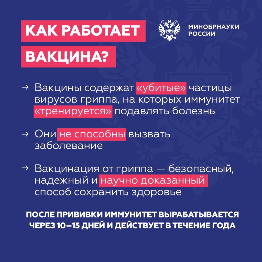 Как защитить себя от гриппа? Рассказываем в инфографике от Минобрнауки РФ.