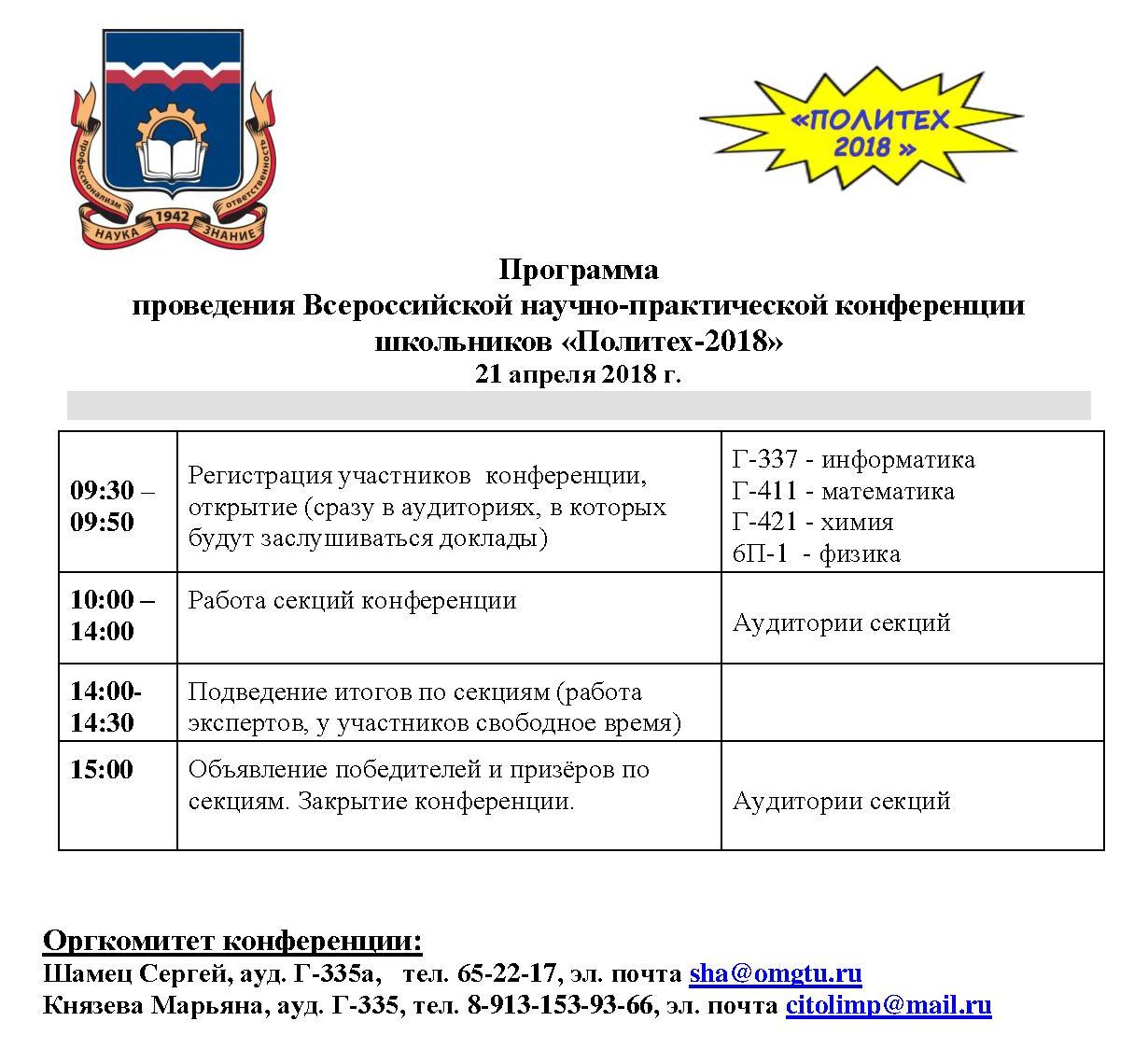 Заключительный этап Всероссийской научно-практической конференции школьников "Политех - 2018"