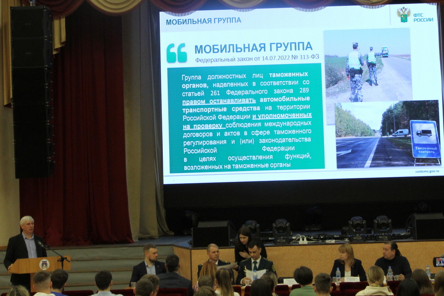 Ветеран таможенной службы, подполковник, старший преподаватель Енза Эдуард Константинович выступил с докладом о мобильных группах таможенных органов, их целях и задачах, техническом оснащении, порядке действий мобильных групп при реализации полномочий по защите экономической безопасности России.