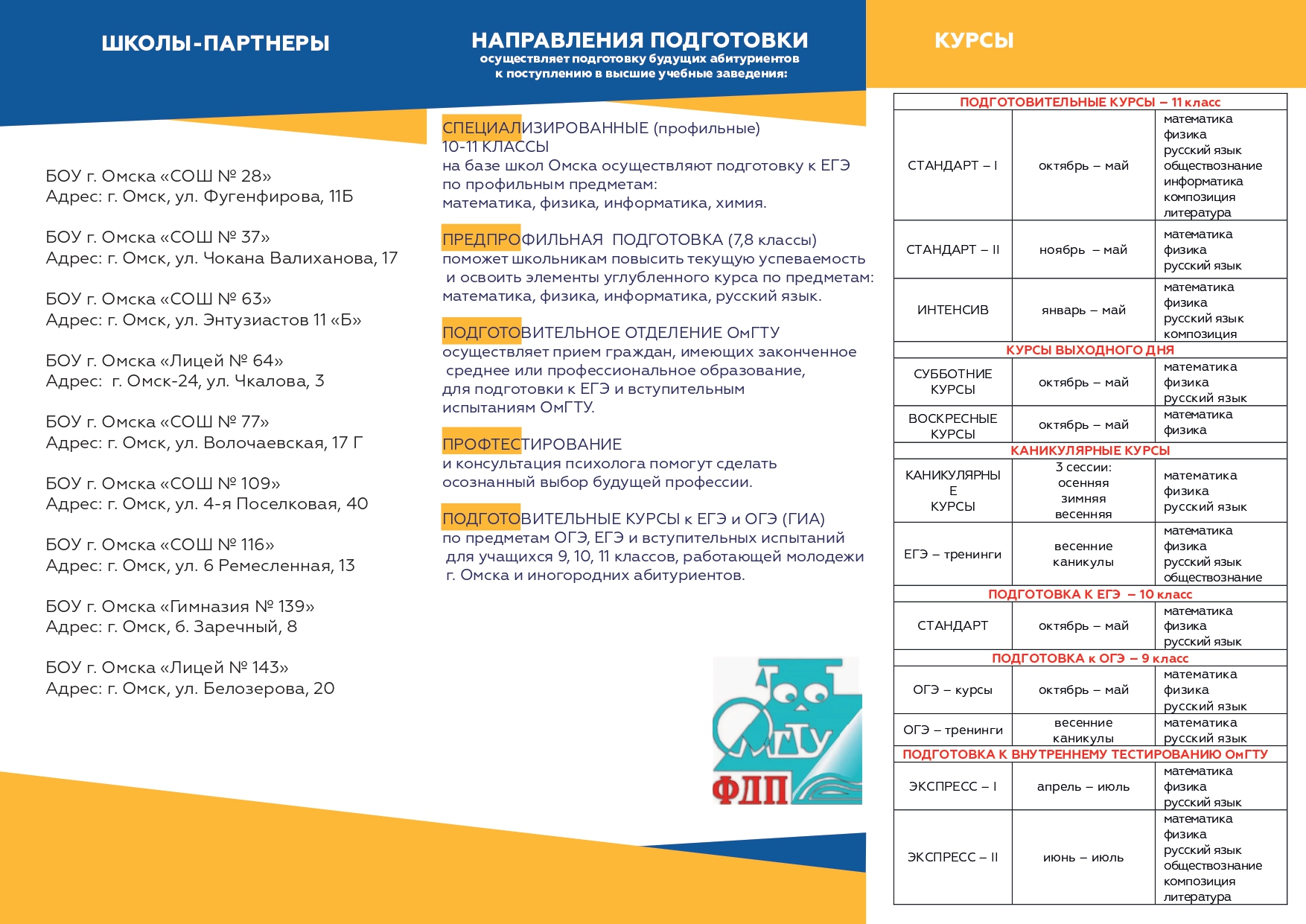 Набор в профильные классы факультета довузовской подготовки: - в 10-е классы - по результатам основного государственного экзамена (ОГЭ); - в 9 и 11 классы - по результатам тестирования по математике Предварительная запись по тел. 65-25-29 Е-mail: fdp@omgtu.ru Страница ФДП на сайте ОмГТУ: www.omgtu.ru/fdp | ||||||||||||||||||