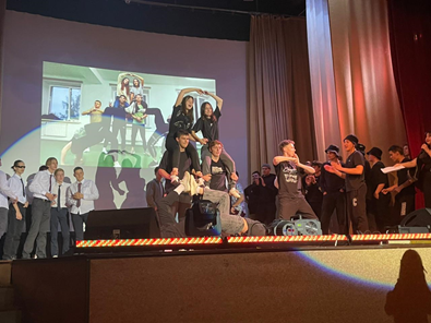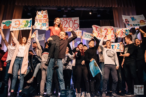 Также жюри оценивали группу поддержки выступающих ребят. Они ходили по залу, выбегали на сцену с плакатами, скандировали кричалки, лишь бы их заметили и услышали!