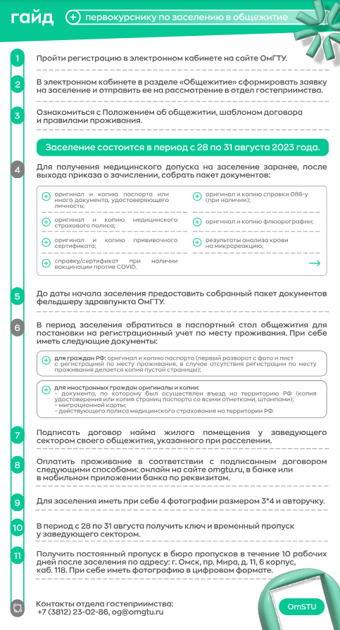 Здравпункт располагается на ул. 2-я Поселковая, д.3/1. График работы: будние дни с 9:00 до 13:00.Перечень документов, необходимых предоставить в здравпункт студентам, зачисленным в ОмГТУ: