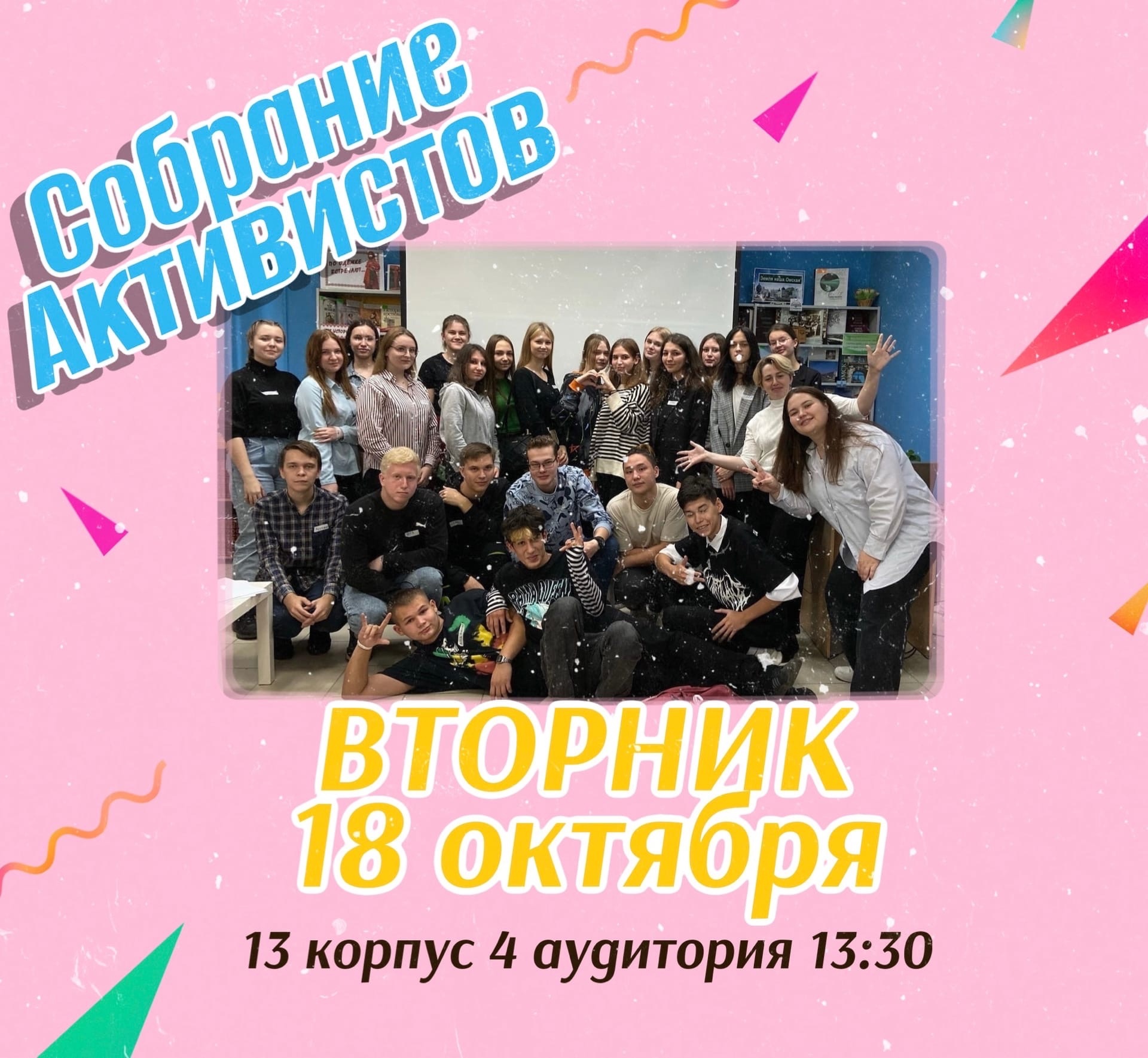 Собрание активистов будет уже завтра! То самое собрание, где начнется подготовка к грандиозному посвящению! 📍18 октября 13:30 в 13 корпусе 4 аудитории