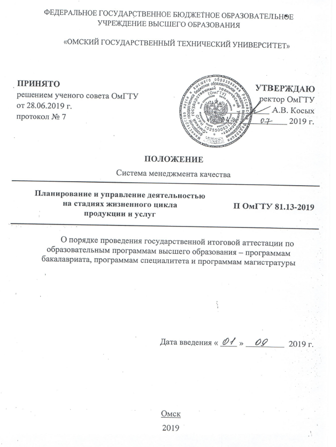 Обратите внимание, что с 1 сентября 2019 года изменяются некоторые требования к оформлению ВКР в соответствии с новым Положением ОмГТУ "О порядке проведения государственной итоговой аттестации по образовательным программам высшего образования – программам бакалавриата, программам специалитета и программам магистратуры" .