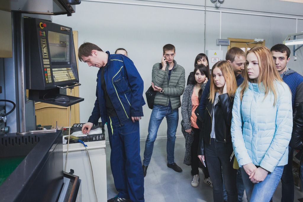 Специалист предприятия показал особенности организации труда на современном производстве, оснащенном автоматизированными обрабатывающими центрами и контрольно-измерителными машинами. Студенты увидели практическое применение актуальных теоретических положений, реализуемых в рамках направлений подготовки факультета экономики и управления.