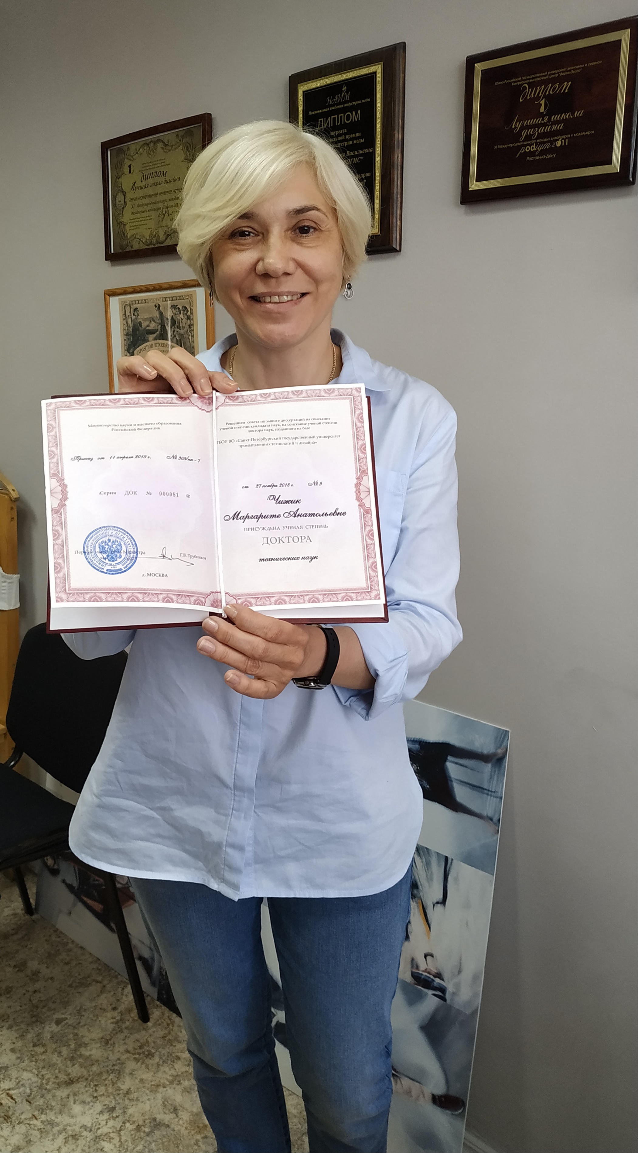 Коллектив кафедры "Дизайн костюма" от души поздравляет Маргариту Анатольевну Чижик с успешной защитой и получением диплома доктора технических наук.