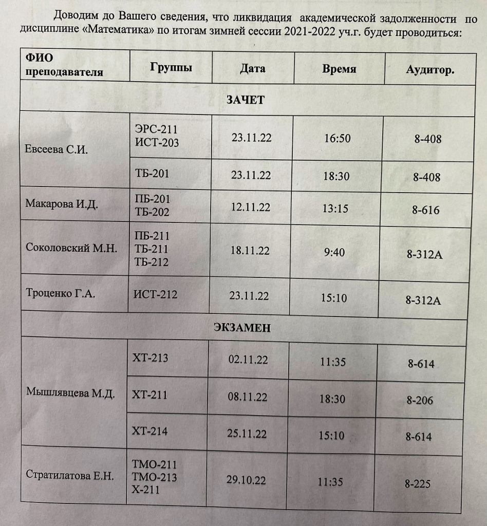 Перенос КОМИССИОННОЙ ПЕРЕСДАЧИ с 05.12.2023 на 19.12.2023 в 13:15 аудитория 10-210