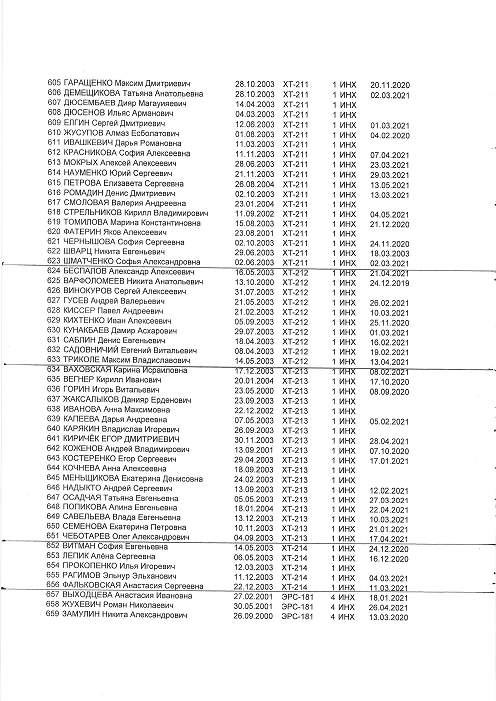 группы:ТМО-211; ТМО-212; ТМО-213; Х-211; ХТ-211; ХТ-212; ХТ-213