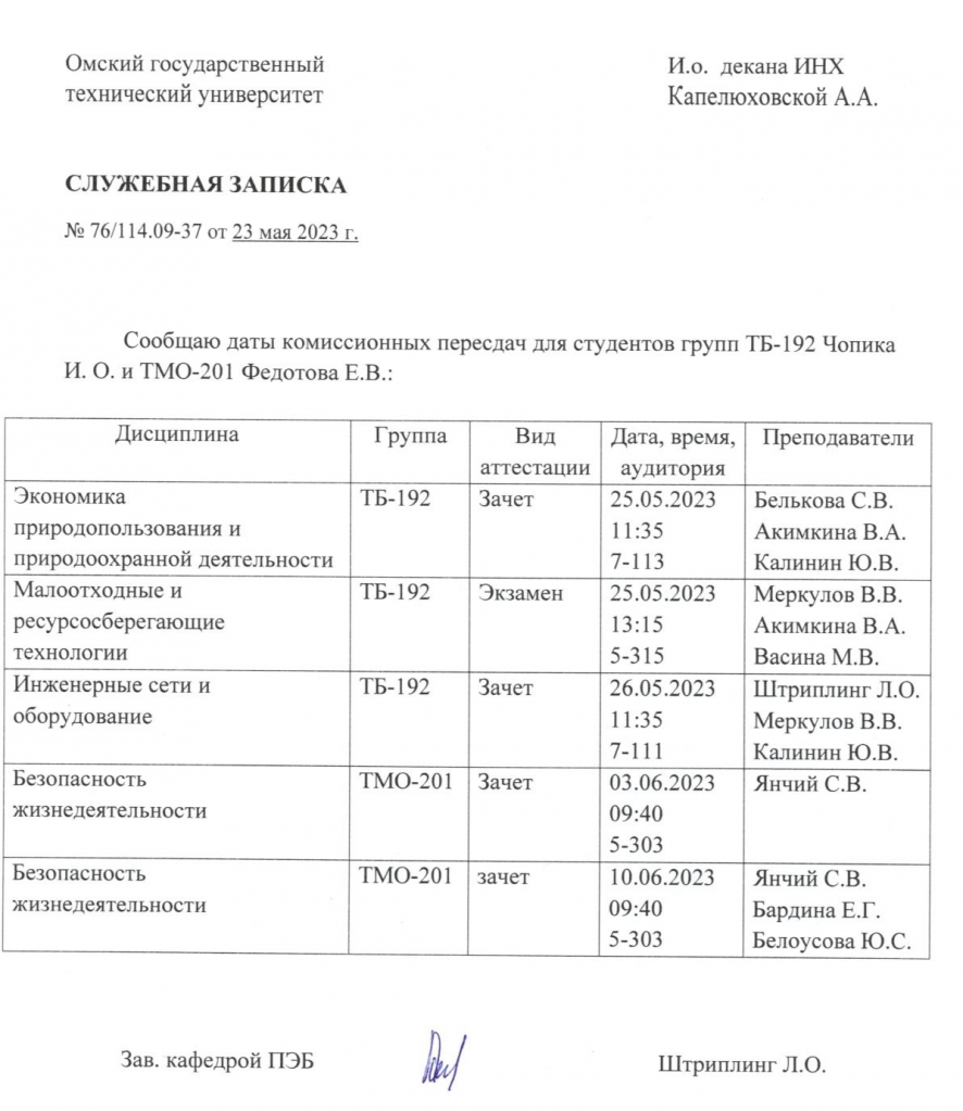 ВНИМАНИЕ!!! Уважаемые студенты ВЫПУСКНЫХ КУРСОВ, просим ознакомиться с Графиком ликвидации задолженностей кафедры "ПРОМЫШЛЕННАЯ ЭКОЛОГИЯ И БЕЗОПАСНОСТЬ" (2я пересдача) по итогам ВЕСЕННЕГО семестра 2022-2023 учебного года.