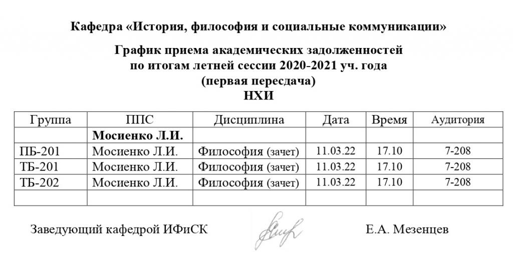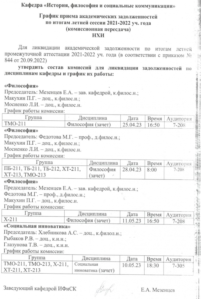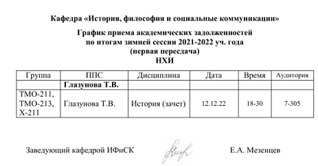 График пересдач Кафедра «История, философия и социальные коммуникации»