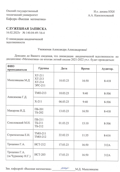 График консультаций и ликвидации академических задолженностей: кафедра "Оборудование и технологии полиграфического производства"