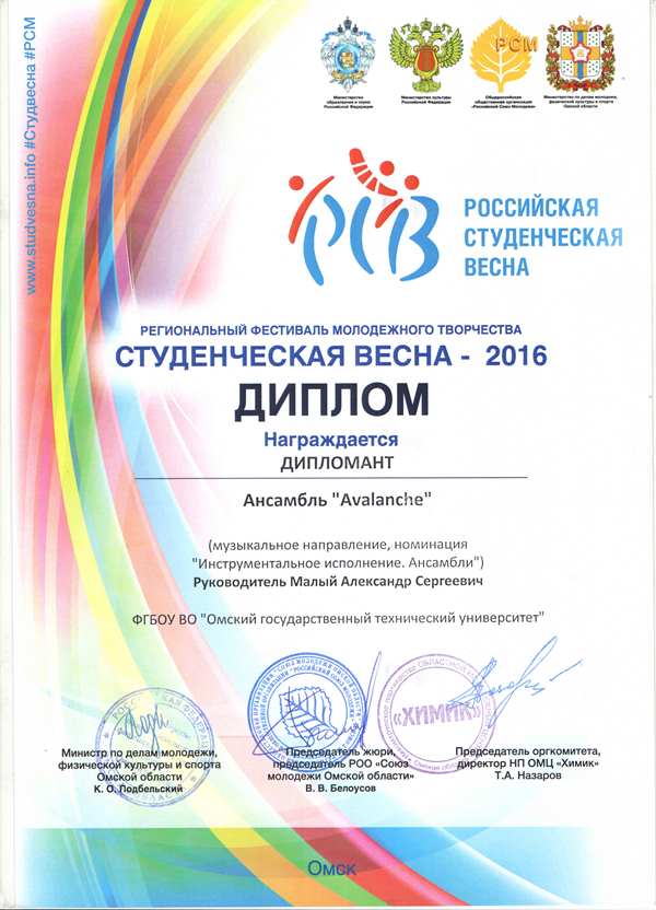В апреле 2016 в Омском молодежном центре «Химик» завершился региональный фестиваль молодежного творчества «Студенческая весна 2016»,