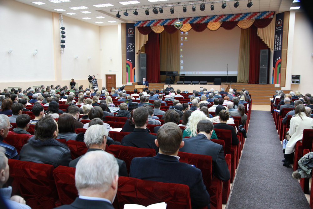 13 ноября в 10.00 в ОмГТУ начала работу VIII Международная научно-техническая конференция «Динамика систем, механизмов и машин», посвященная 70-летию ОмГТУ. Открывал конференцию Министр промышленной политики, связи и инновационных технологий Омской области Гладенко Алексей Анатольевич.