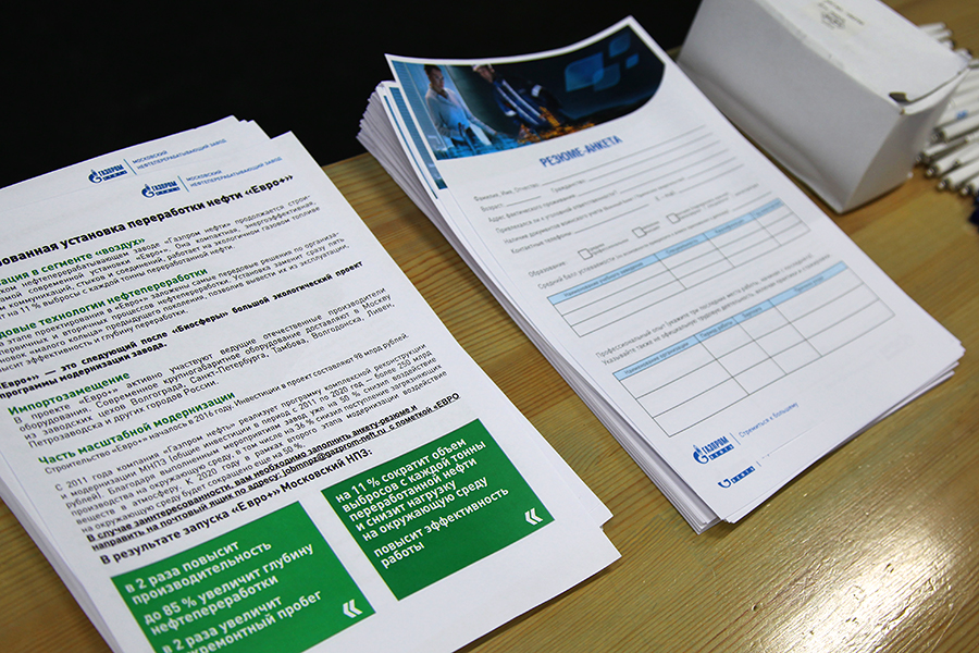 Ребятам рассказали о возможностях карьеры в АО «Газпромнефть-МНПЗ», о перспективах развития предприятия и пригласили к участию в конкурсном отборе. В данный период МНПЗ проводит отбор сотрудников по всей стране в университетах, где есть профильные специальности, на строящуюся самую современную комбинированную установку переработки нефти «Евро+». Штат установки состоит из операторов технологических установок и машинистов компрессорных установок.