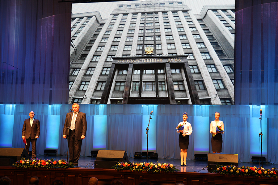 Олег Смолин вручил благодарственные письма Комитета по образованию и науке Государственной Думы Федерального Собрания Российской Федерации Анатолию Косых, ректору ОмГТУ и Виктору Шалаю, президенту университета.