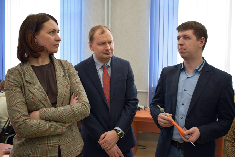 Один из инновационных проектов, который был представлен гостям Центра – "Стилус-КИМ", разработанный Александром Тигнибидиным и Светланой Такаюк совместно с сотрудниками завода "Высокие технологии". Проект прошел федеральную акселерационную программу финала конкурса GenerationS трека TechNet совместно с ОДК "Сатурн", являющегося одним из 12 проектов со всей России. Также разработка получила поддержку Фонда содействия инноваций по программе УМНИК 2017. Оксану Фадину впечатлили дизайн прибора и возможности его использования в производстве.