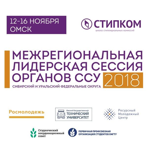 С 12 по 16 ноября 2018 года в г. Омске будет проходить Межрегиональная лидерская сессия органов студенческого самоуправления вузов Сибирского и Уральского федеральных округов. Организатором форума стал Омский государственный технический университет при поддержке Федерального агентства по делам молодежи, Первичной профсоюзной организации студентов ОмГТУ и Студенческого координационного совета Общероссийского профсоюза образования.
