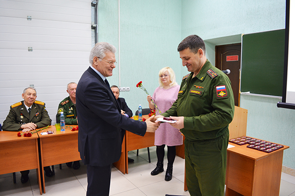 В актовом зале прошел концерт, на котором были вручены медали Министерства обороны РФ: "Медаль за воинскую доблесть I степени" - полковнику Игорю Кудрявцеву и подполковнику Денису Погодаеву, "Медаль за воинскую доблесть II степени" - подполковнику Алексею Щербинкину, "Медаль за отличие в военной службе I степени" - подполковнику Валерию Мунину, "Ветеран Вооружённых сил Российской Федерации" - полковнику Игорю Лепешинскому и подполковнику Владимиру Маслякову.