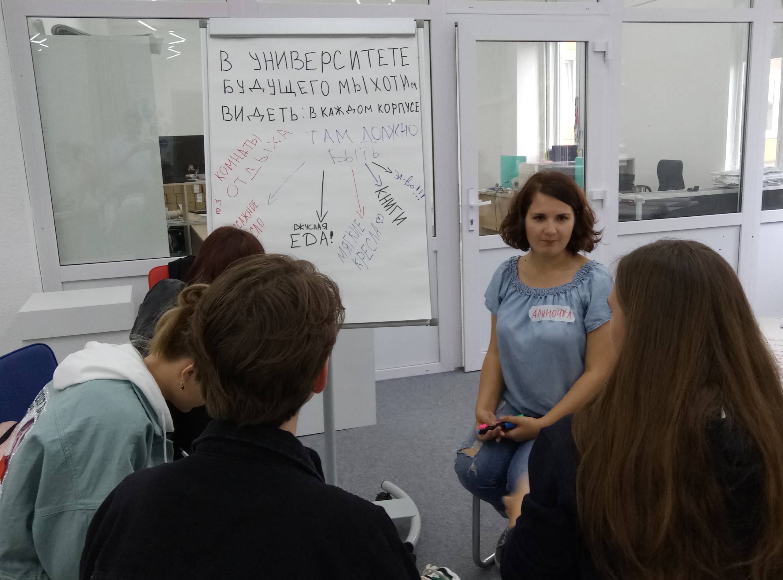 На площадке Точки кипения ОмГТУ первокурсники направлений подготовки «Стандартизация и метрология», «Нефтегазовое дело» и «Материаловедение и технология материалов» учились решать задачи нестандартным образом. В ходе стратегической сессии студенты получили навыки применения дизайна мышления – одной из технологий решения творческих задач. По итогам первого дня лучшим проектом была признана «Капсула сна» (авторы: Виктория Костяная, Эмилия Палухина, Мария Шепелева), а во второй день победил проект «Виртуальная реальность в групповом обучении» (авторы: Владислав Горбаченко, Александр Майданец, Данила Пересада, Ильяс Чуакбаев).