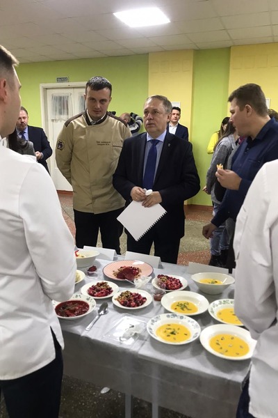 После официальной части все участники круглого стола смогли сравнить традиционные блюда горячих школьных обедов и новые студенческие разработки. Команда Омского политеха под руководством заведующего кафедрой «Биотехнология, технология общественного питания и товароведение» Максима Шадрина удивила присутствующих гостей необычной подачей и сочетанием привычных продуктов. В меню были представлены 30 разнообразных блюд, среди которых: борщ с вяленым томатом, вишней и свекольными чипсами, морковный суп-пюре, куриные котлеты с зеленым горошком и даже гречневый попкорн.