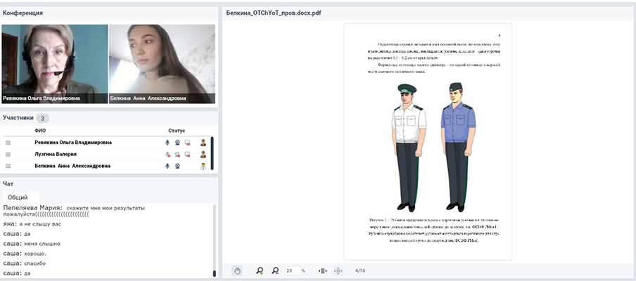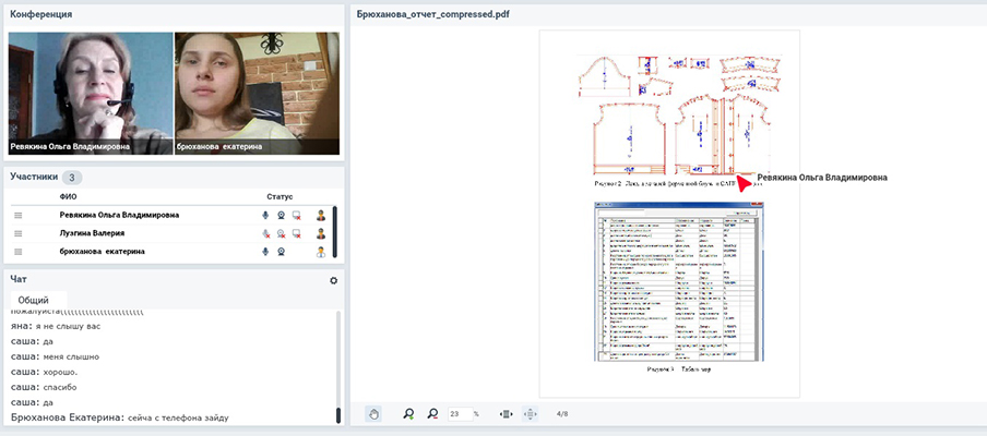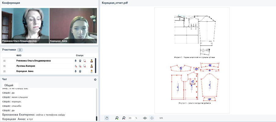 Дистанционный экзамен по дисциплине «Инновационные технологии в проектировании одежды» проводился под руководством доцента кафедры «Конструирования и технологии изделий легкой промышленности» Ольги Ревякиной и состоял из двух этапов. Вначале студенты прошли тестирование в режиме прокторинга (онлайн-сопровождение и контроль учащегося), а затем по очереди защитили индивидуальные задания, используя при этом виртуальную комнату Mirapolis.