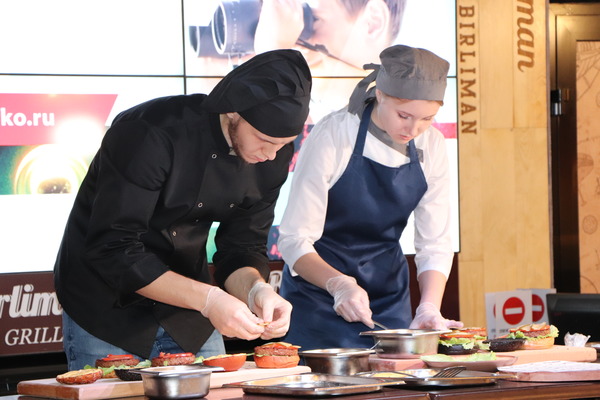 Бренд-шеф группы компаний «ЭФКО» Геннадий Сухарев приготовил бургер с растительной котлетой бренда «Hi». В рамках мастер-класса студенты кафедры «Биотехнология, технология общественного питания и товароведение» повторяли движения мастера.