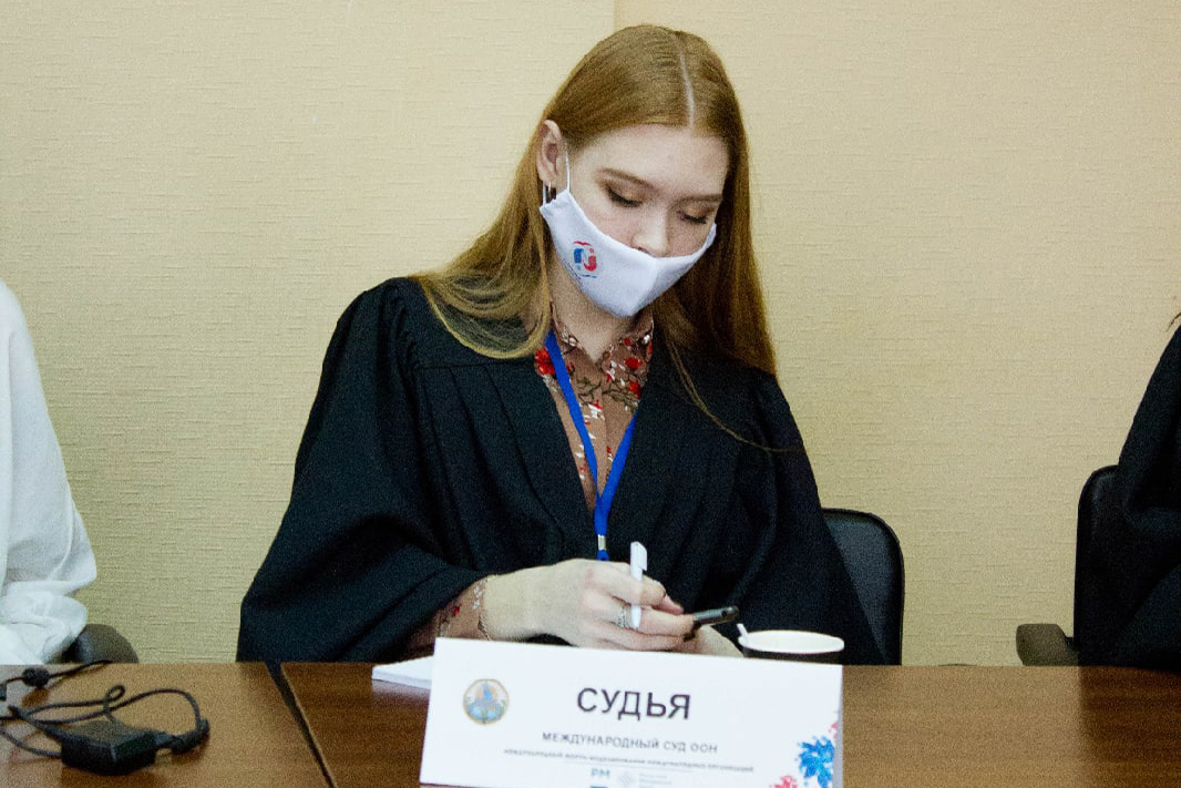 Студентка факультета экономики, сервиса и управления Маргарита Петрова примерила на себя роль представителя Международного суда ООН. Судье было необходимо вынести решение и оформить резолюцию по делу вооруженного конфликта в Нагорном Карабахе.