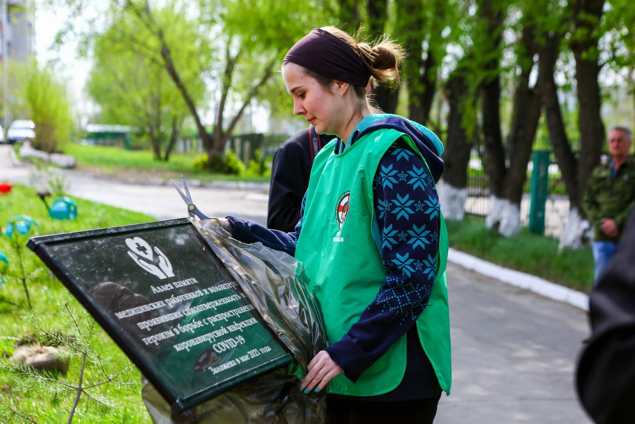 В память о медицинских работниках и волонтерах, погибших от COVID-19, на территории городской клинической больницы №1 им. Кабанова А.Н. высадили аллею из хвойных деревьев. Акция «Аллея памяти» прошла в рамках благотворительного марафона епархиального общества православных добровольцев «Рука помощи». Руководителем организации является студент института заочного обучения Омского государственного технического университета, священник Виктор Сыромятников. Под его руководством были разработаны мемориальные доски в память о тех, кто боролся с распространением вируса и погиб во время пандемии.