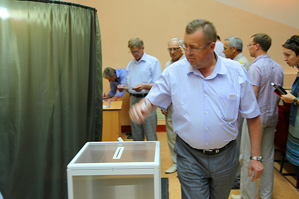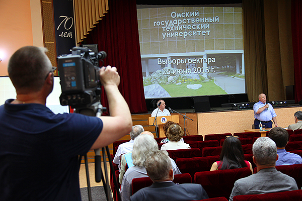 На конференцию по выбору ректора, проходившую в актовом зале Главного корпуса университета, были делегированы 177 научно-педагогических работников, представителей других категорий сотрудников и обучающихся в ОмГТУ. Перед началом конференции были зарегистрированы 174 делегата. Кандидаты на должность ректора ОмГТУ еще раз представили свои программы и ответили на вопросы делегатов конференции. В результате голосования со значительным отрывом (136 из 174 голосов) ректором ОмГТУ был избран Анатолий Владимирович Косых. На ректорском посту Анатолий Владимирович сменит д.т.н., профессора Шалая Виктора Владимировича, 8 лет возглавлявшего вуз.