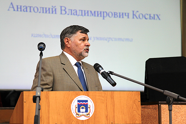 В Омском государственном техническом университете избран новый ректор – д.т.н., профессор Косых Анатолий Владимирович, до этого работавший первым проректором-проректором по научной работе в ОмГТУ.В соответствии с решением аттестационной комиссии Минобрнауки России от 2 июня 2015 года были согласованы три кандидатуры для участия в избрании на должность ректора ОмГТУ – к.т.н., доцент, проректор по административно-хозяйственной работе Горшенков Анатолий Анатольевич, д.т.н., профессор, первый проректор-проректор по научной работе Косых Анатолий Владимирович, а также д.т.н., доцент, заведующий кафедрой «Менеджмент» Чернявский Дмитрий Иванович. В течение двух недель кандидаты встречались с коллективами вуза, представляли свои программы по развитию Омского государственного технического университета.