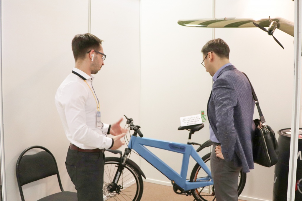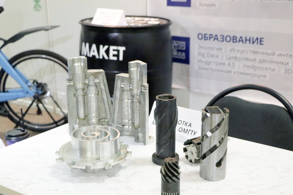 Экспозиция Омского государственного технического университета на выставке в этом году направлена на представление возможностей ресурсных центров по оказанию инжиниринговых услуг промышленным предприятиям региона. Посетители могут ознакомиться со следующими инновационными разработками: беспилотным летательным аппаратом, электрическим скутером MARS, велосипедом из переработанных пластиковых бутылок, образцом тары для горюче-смазочных материалов на основе полимерного композита и ювелирными украшениями из титана.