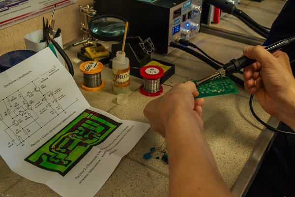 На другой площадке гости смогли окунуться в мир электроники. Сотрудники радиотехнического факультета вуза рассказали им о современном производстве электронных устройств, а затем предложили собрать свою микросхему.
