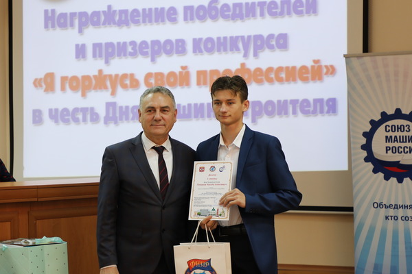 Студенты машиностроительного института ОмГТУ стали призерами третьей степени в конкурсе «Я горжусь своей профессией!». Валерия Мироненко, Никита Плеханов и Павел Имамбаев были награждены дипломами и ценными призами, кроме того, Валерия Мироненко получила благодарственное письмо от депутата Государственной Думы РФ Игоря Антропенко.Событие посвящено Дню машиностроителя и 15-летию СоюзМаша России. В нем приняли участие не только обучающиеся Омского государственного технического университета и Омского авиационного колледжа имени Н.Е. Жуковского, но и рабочие, инженеры, конструкторы, технологи, юристы и экономисты самых крупных машино- и моторостроительных предприятий региона. Конкурсанты были различного возраста, уровня образования и должности.