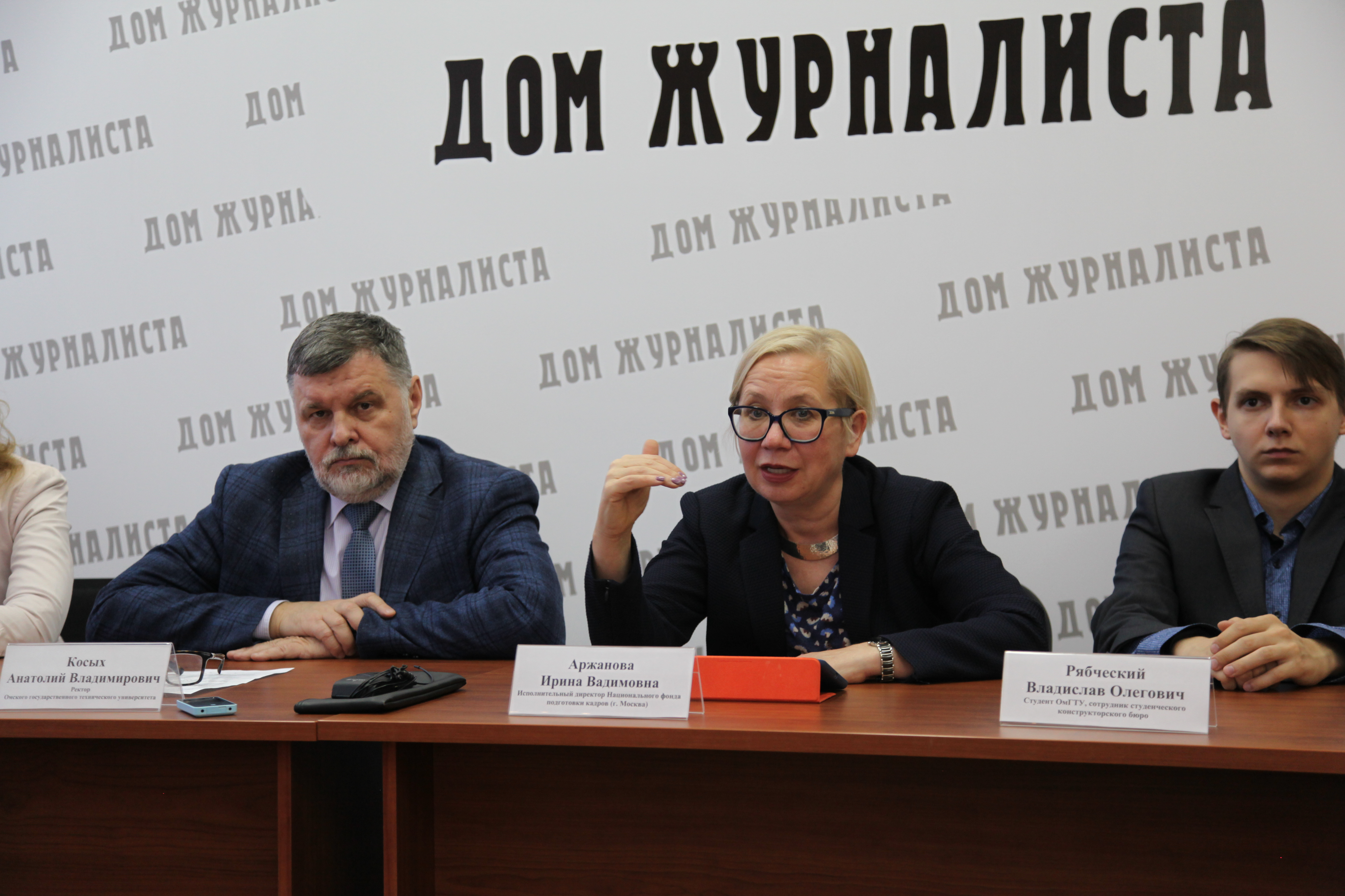 Накануне конференции, 15 ноября, в Доме журналистов прошла пресс-конференция ««Роль опорных университетов в развитии региона», в которой приняли участие Ирина Аржанова, исполнительный директор НФПК, Анатолий Косых, ректор ОмГТУ, Елена Гебель, заведующий кафедрой “Автоматизации и робототехники”, руководитель СКБ (ОмГТУ) и Владислав Рябчевский, студент ОмГТУ, сотрудник СКБ. Пресс-конференция была посвящена изменению роли опорных университетов.